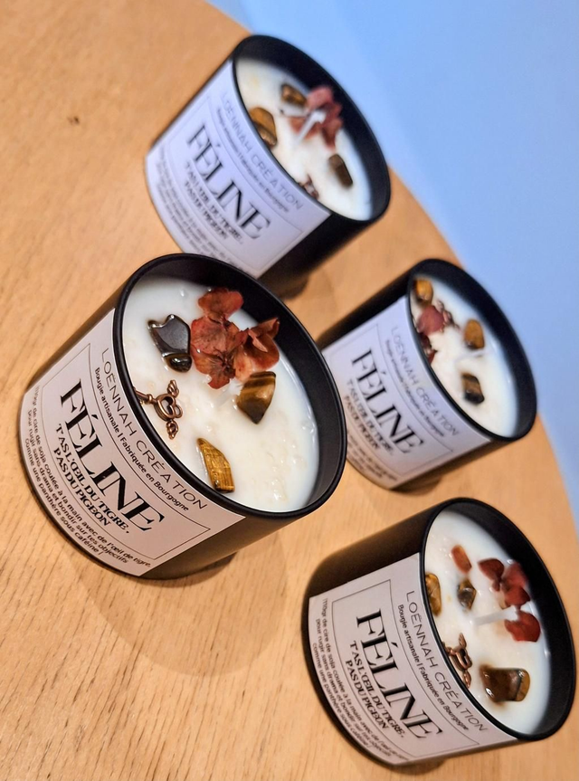 Voici Féline, la bougie qui réveille ton feu intérieur et te pousse à avancer, même quand t’as envie de tout laisser tomber.